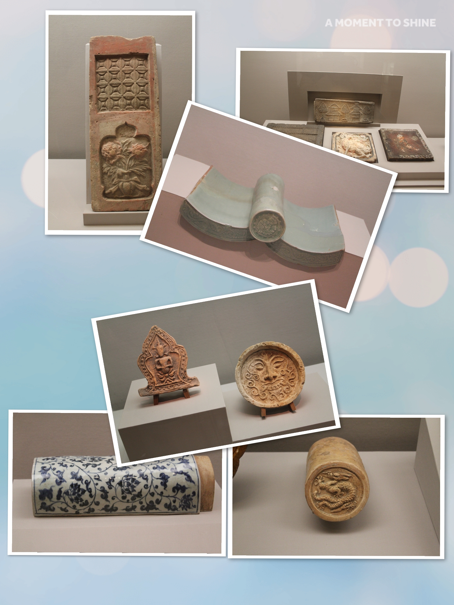 靑華白瓷에는 多樣한 무늬들이 表現 되어 있다. 그 중에서도 龍,鳳凰,牡丹넝쿨,寶相華넝쿨등 의 무늬가 있는 靑華白瓷 기와는 보기드문것으로 明,靑代에 發展된 華櫚한 靑華白瓷의 一面을 보여준다.
