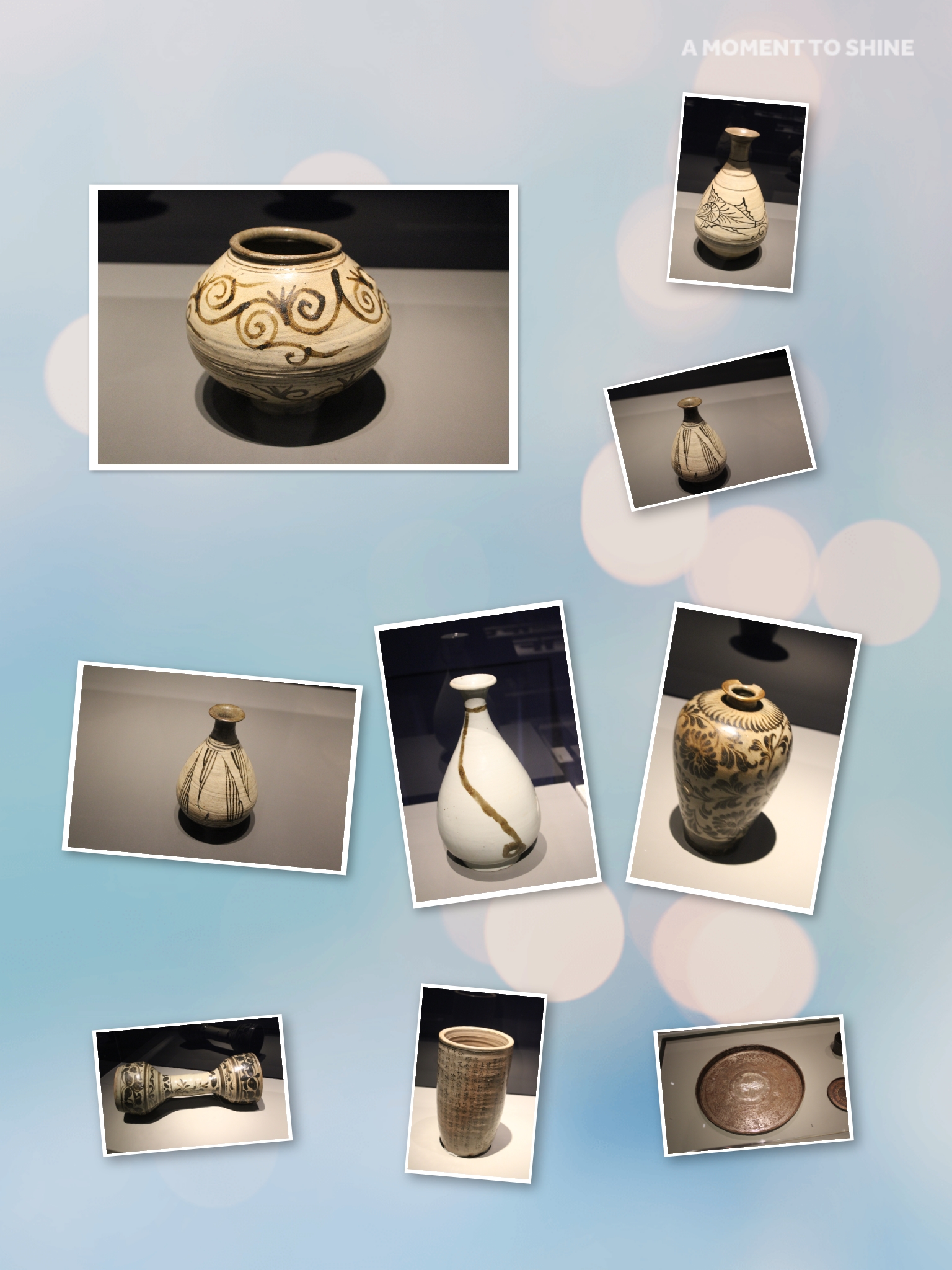 朝鮮時代에는 祖上의 業蹟을 기리고자 粉靑沙器나 白瓷에 묘지를 남기는 境遇가 많았읍니다. 묘지는 代替로 陰刻 技法이 主를 이루고 鐵畵,鐵畵技法이 뒤를 이었읍니다. 17 ~ 19 世紀는 白瓷 묘지의 全成期로 直四角 板形의 白瓷에 鐵畵나 靑畵로 墓地를 새겼읍니다. 以後 圓通形이나 待接形,접시형과 같은 模樣도 만들어 집니다. 展示品은 새조의 최 측근이었던 韓明澮와 高麗의 宰相이었던 安克仁의 墓地로 죽은 사람의 功德을 기리고자 後孫이 만든것입니다.