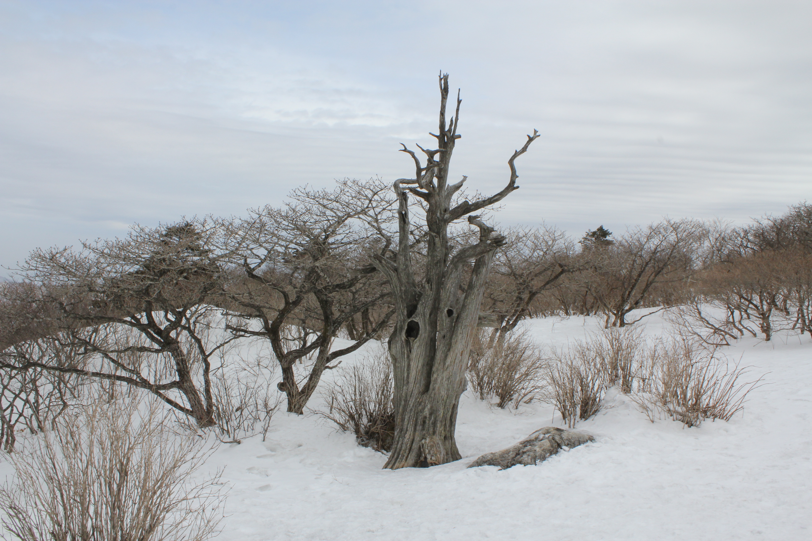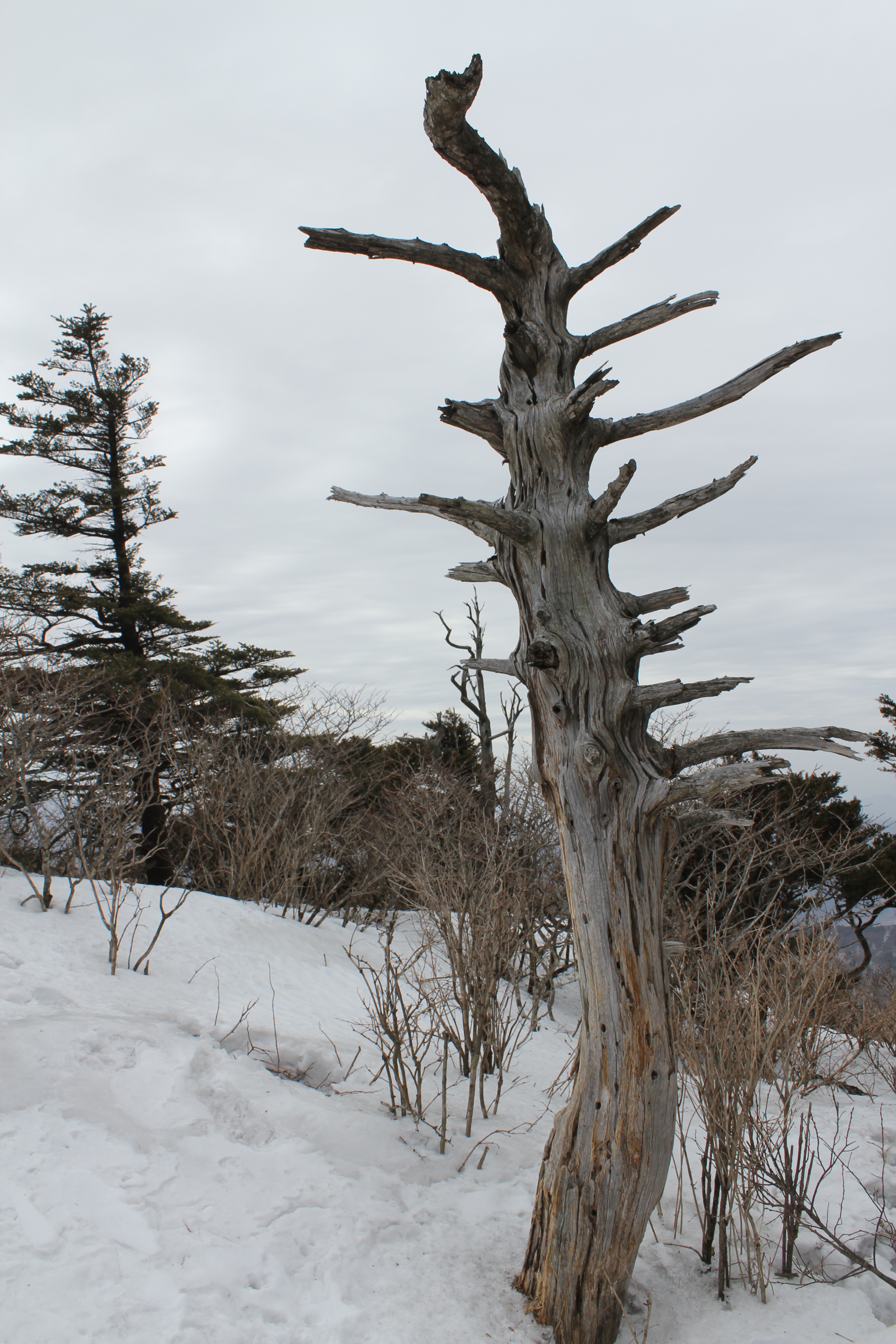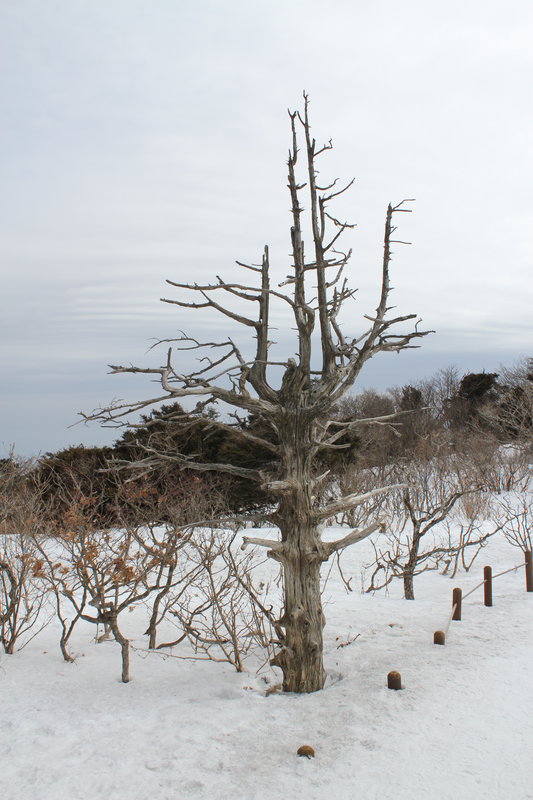 살아있을때 바람의 風向에 따라 가지가 한쪽으로 몰려있는것이 보입니다. 自然 條件에 順應하고 壽命을 다한 모습에 敬意를 標하지 않을 수가 없읍니다.
