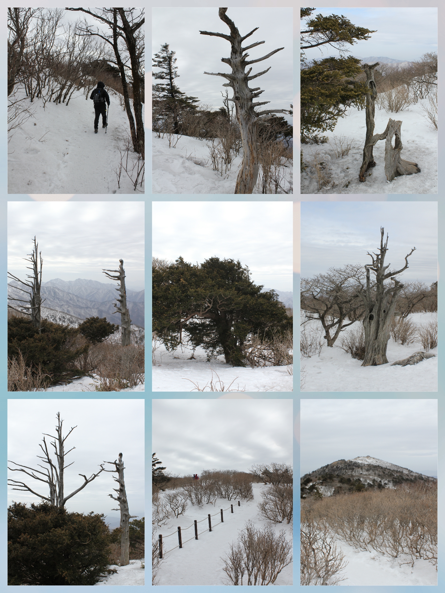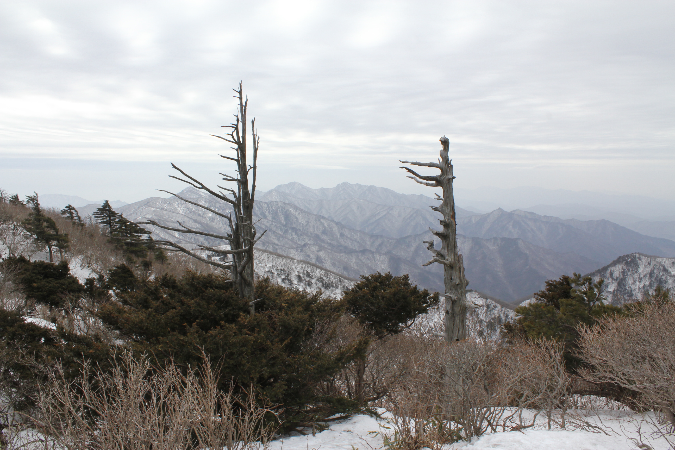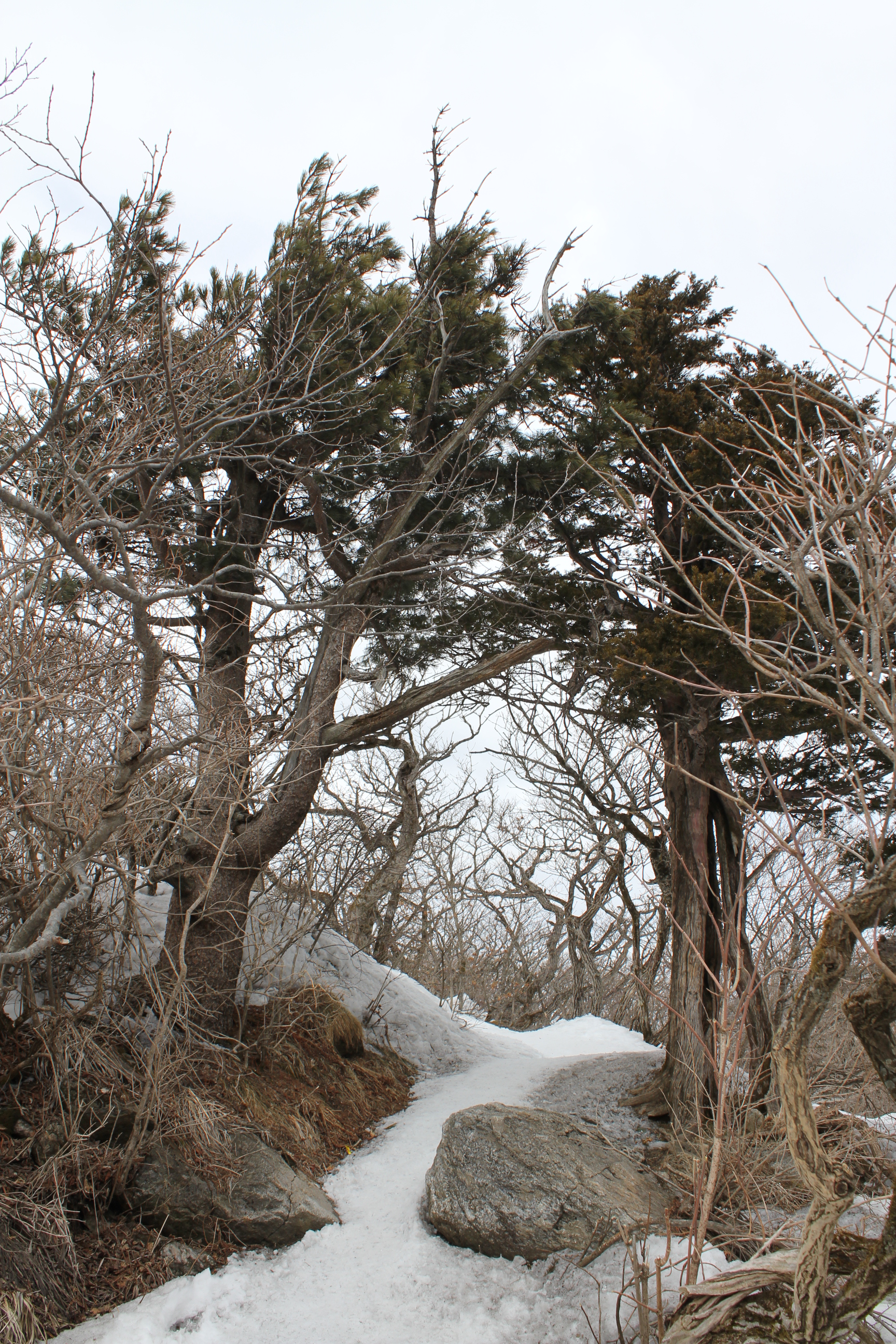 살아있을때 바람의 風向에 따라 가지가 한쪽으로 몰려있는것이 보입니다. 自然 條件에 順應하고 壽命을 다한 모습에 敬意를 標하지 않을 수가 없읍니다.
