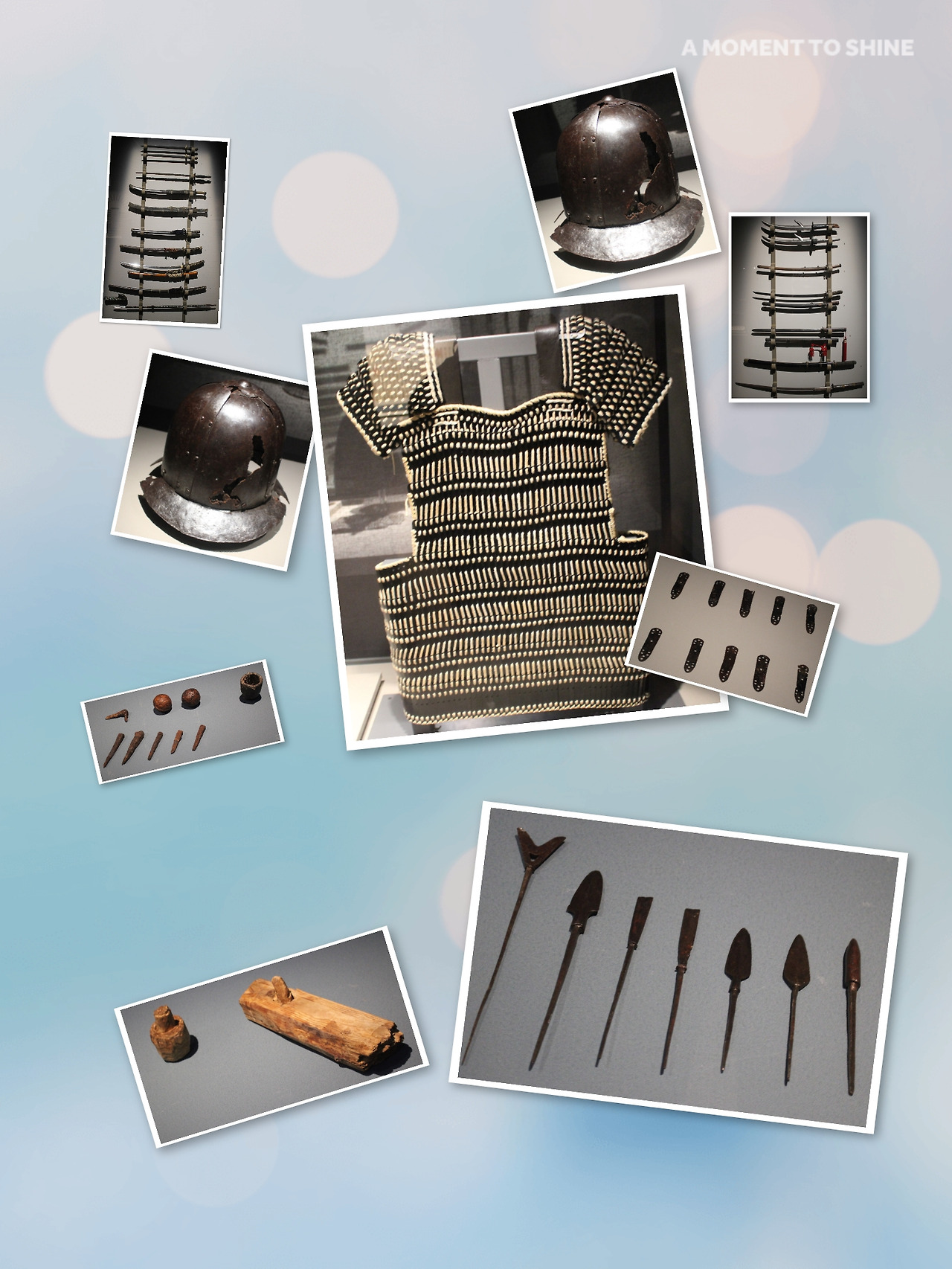 釜山 수안동에서 出土된 鐵甲片 이다. 2005 년 부터 朝鮮時代 東來邑城 垓字發掘이 始作되어 鐵甲上衣 1 벌과 목을 감싸는 脛甲 札甲片, 첨주 2편 등이 出土 되었다. 出土된 札甲의 模樣과 札甲片의 模樣과 札甲片을 活用하여 鐵로 미늘을 만들고 사슴 가죽끈으로 마늘을 連結하여 札甲을 復元 하였다. 出土된 札甲 1편은 미늘이 붙어서 解體가 不可能 하지만 原形의 모습은 어느程度 維持하고 있었다. 發掘된 갑옷은 앞트임이 보이지 않아 옆트임을 주어 만들었다.