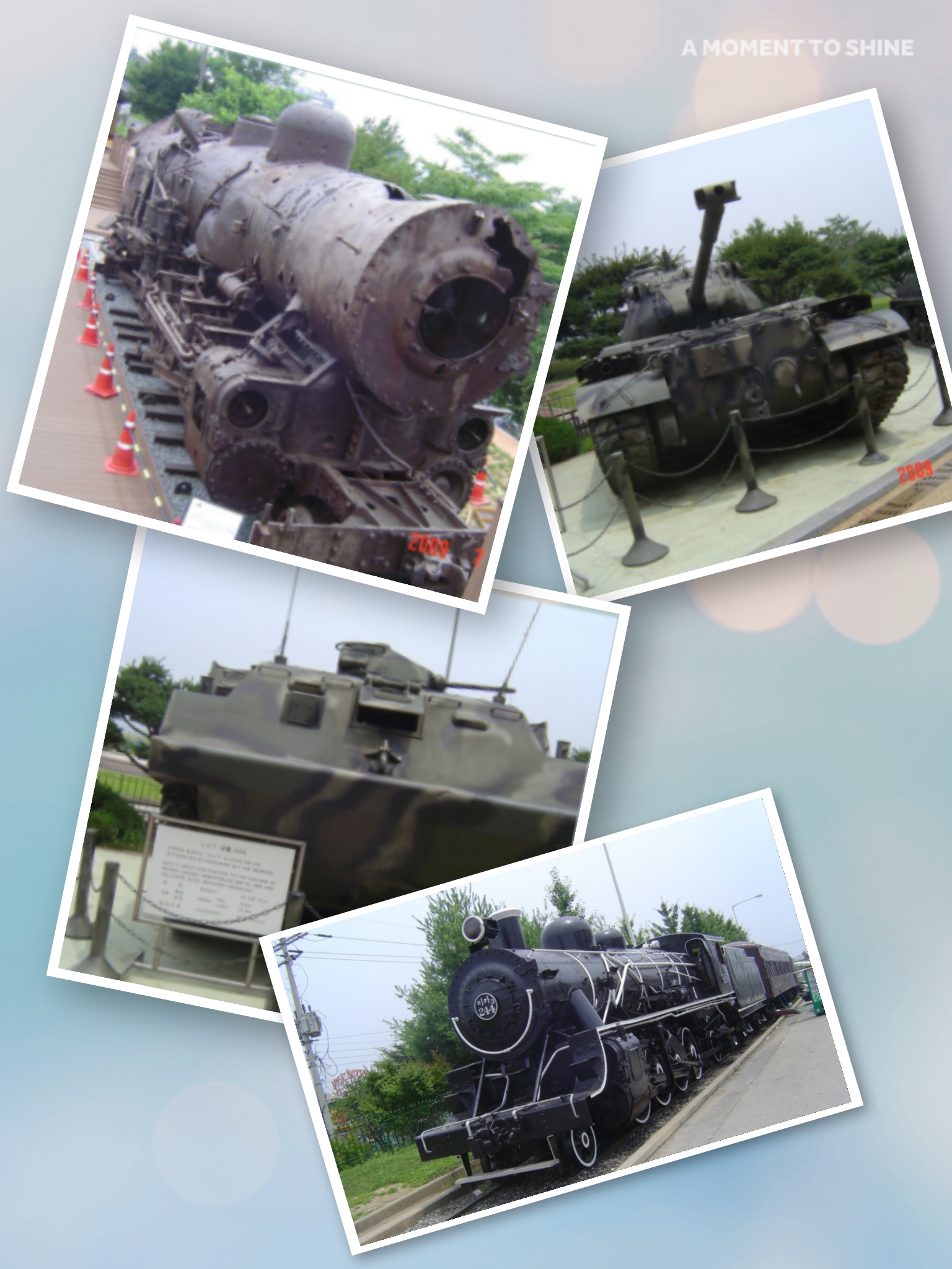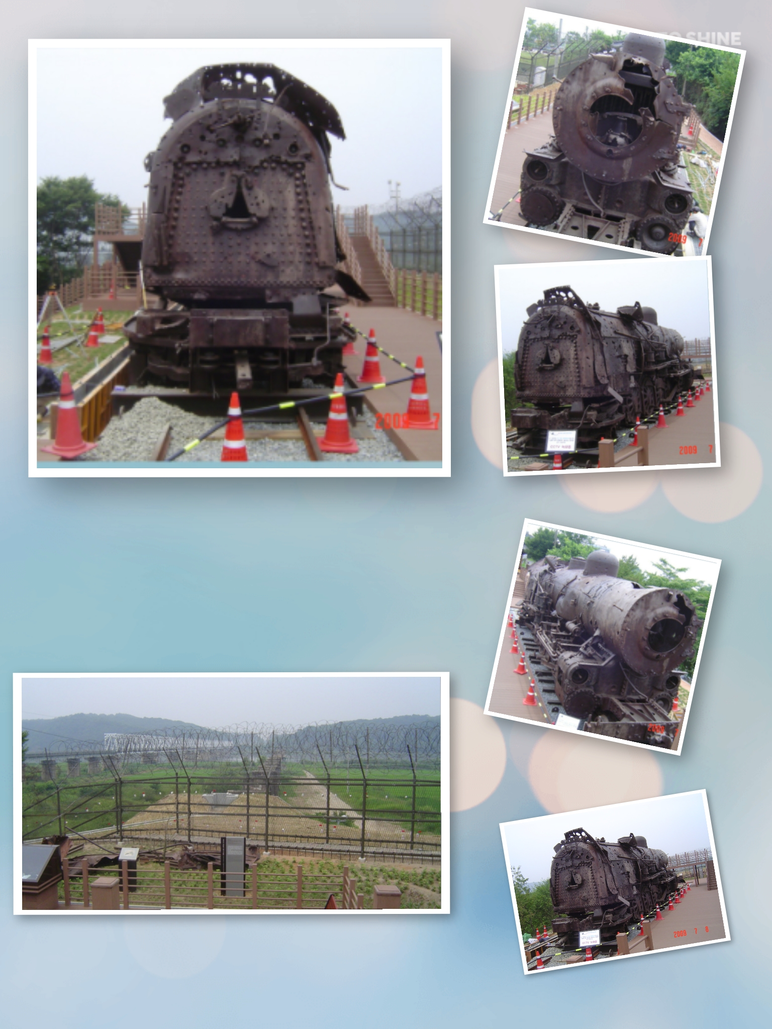 京義線 蒸氣機關차는 韓國戰爭시 爆擊을 맞아 멈춰버린후 分斷과 葛藤의 象徵으로 非武裝地帶에 放置되어 남아 있었다. 50년이 지난후 포스코와 文化財在廳이 1文化財 1 지킴이 運動을 통한 蒸氣機關차 復元勞力과 京畿觀光公社의 蒸氣機關車 展示場 造成事業이 結實을 맺어 2009년 여름 臨津閣 自由의다리의 入口에 爆擊당시의 모습으로 復元된 蒸氣機關車 입니다, 韓國戰爭의 아품과 平和에 대한念願이 共存하는 京義線蒸氣機關車는 그 당시 戰爭의 慘酷한 結果를 證明이라도 하는듯 우리에게 警鍾을 울리고 있다. 京城을 起點으로 하여 新義州와 釜山을 往復 하던 蒸氣機關車가 6.25 戰爭으로 인하여 敵의 爆擊으로 運行이 中斷된지 60餘年이 흘러 이곳에 凶物스럽게 展示되고있읍니다. 우리에게 무거운 警鍾을 울리는것 같습니다. 精神 차리라고요.
