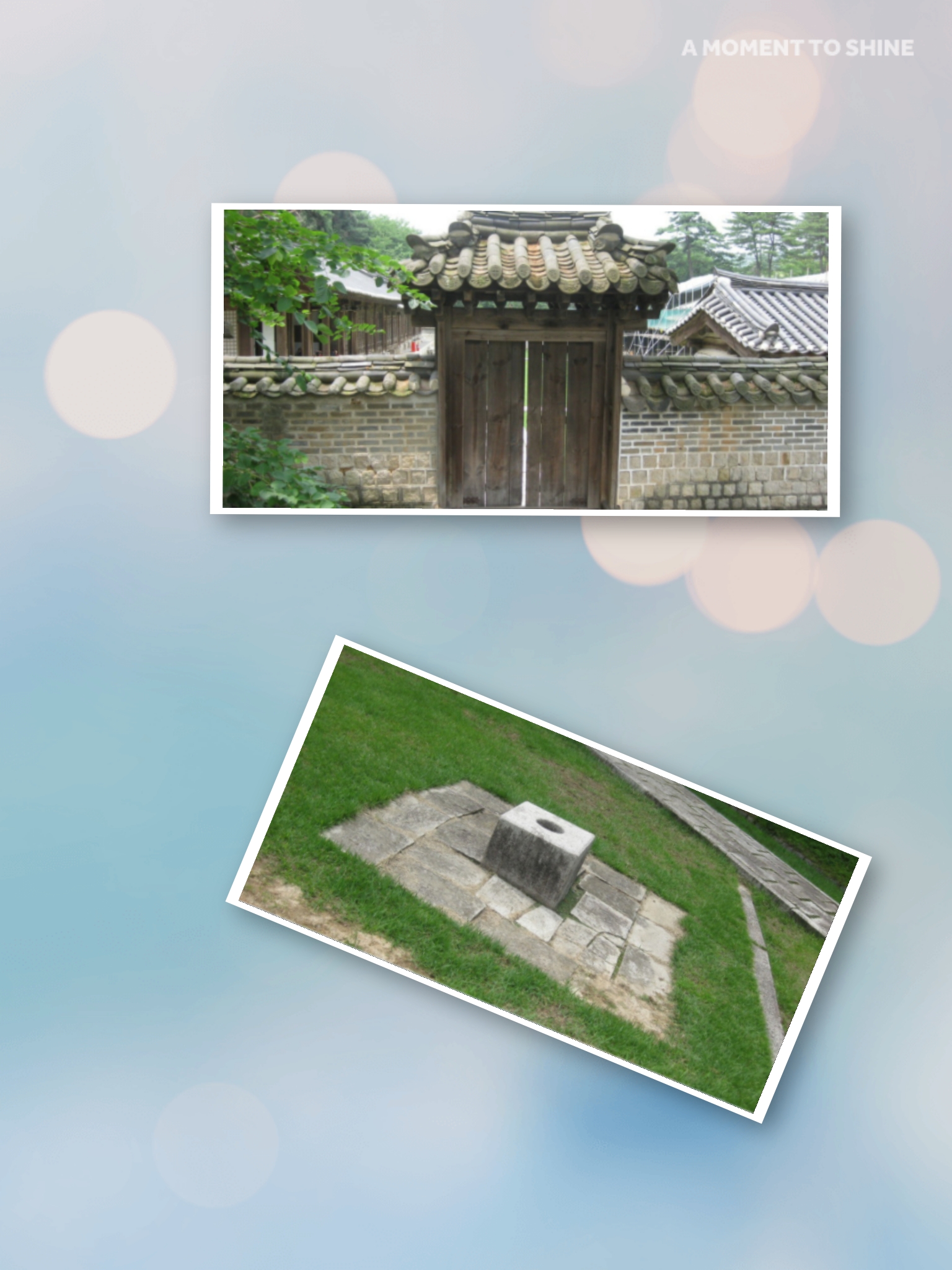 천원지방 (天圓地方) "밖은 땅을 象徵하는 四角形이고 안은 하늘을 象徵하는 원형" 의 연못이 아닌 가운데 둥그런 섬을 두고 연못 全體의 형태도 원형인 원지원도 型式의 연못이 造成되어있다.