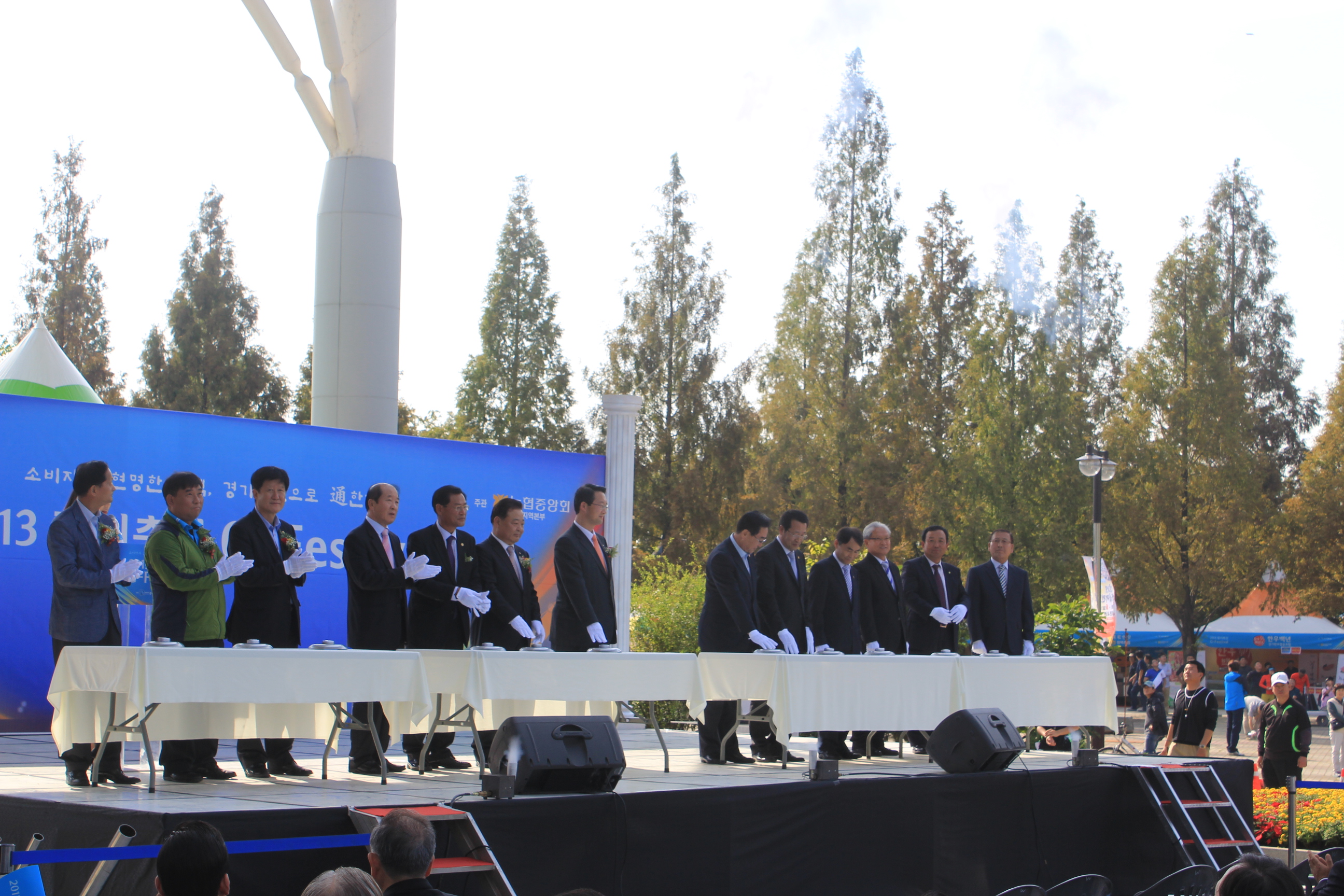 祝祭開幕을 알리는 폭죽 버튼을 누르는 人士들